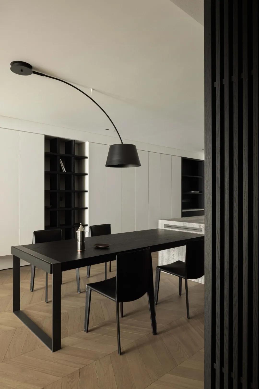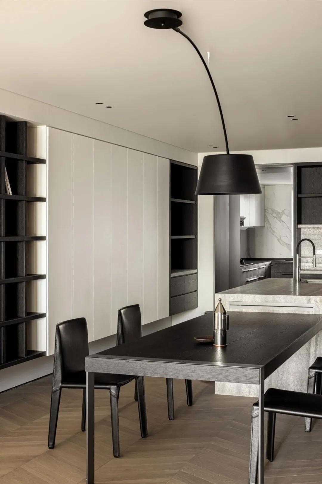 嵌入式口袋门流畅自如,消隐空间边界,半开放动线布局,在专注围合与坦然开放间游离,就此凝聚成一个自在的场,小酌和宴客均可,让心灵舒展。