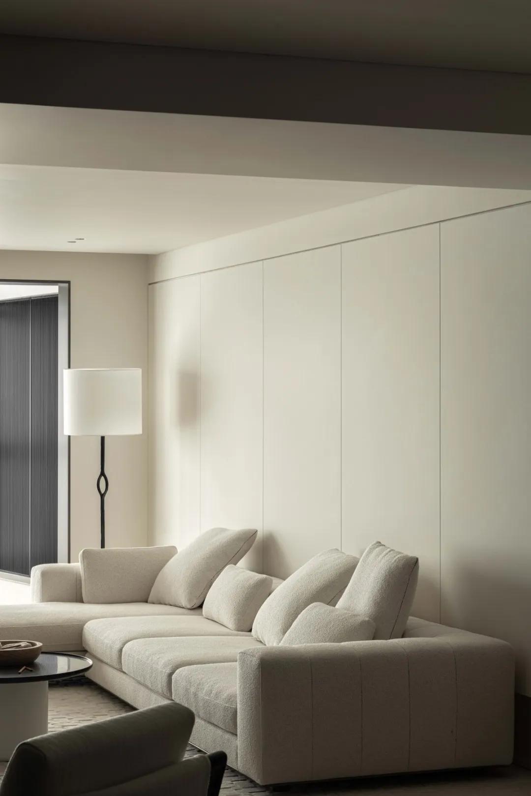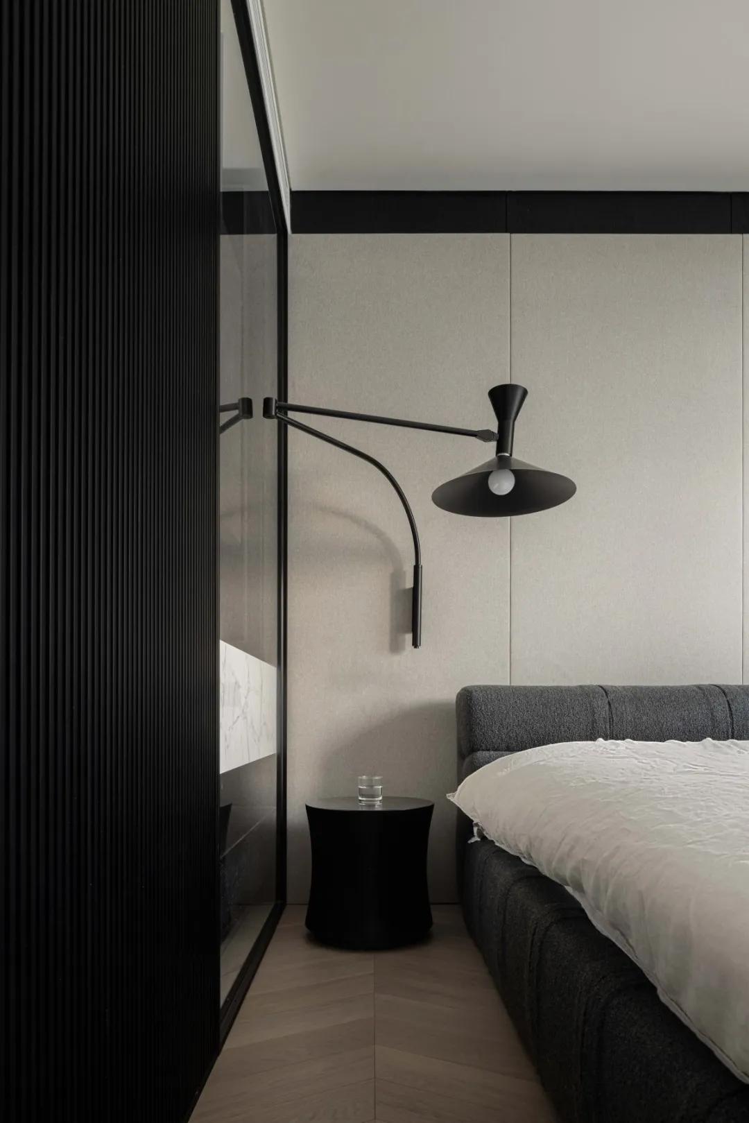 主卧延续恬淡气质,将静谧作为更深度关键词,消弱了一切外物对于心灵的干扰。黑橡木格栅的深沉,与温润柔软的布艺调和,在沉静与温暖间渗透平衡。