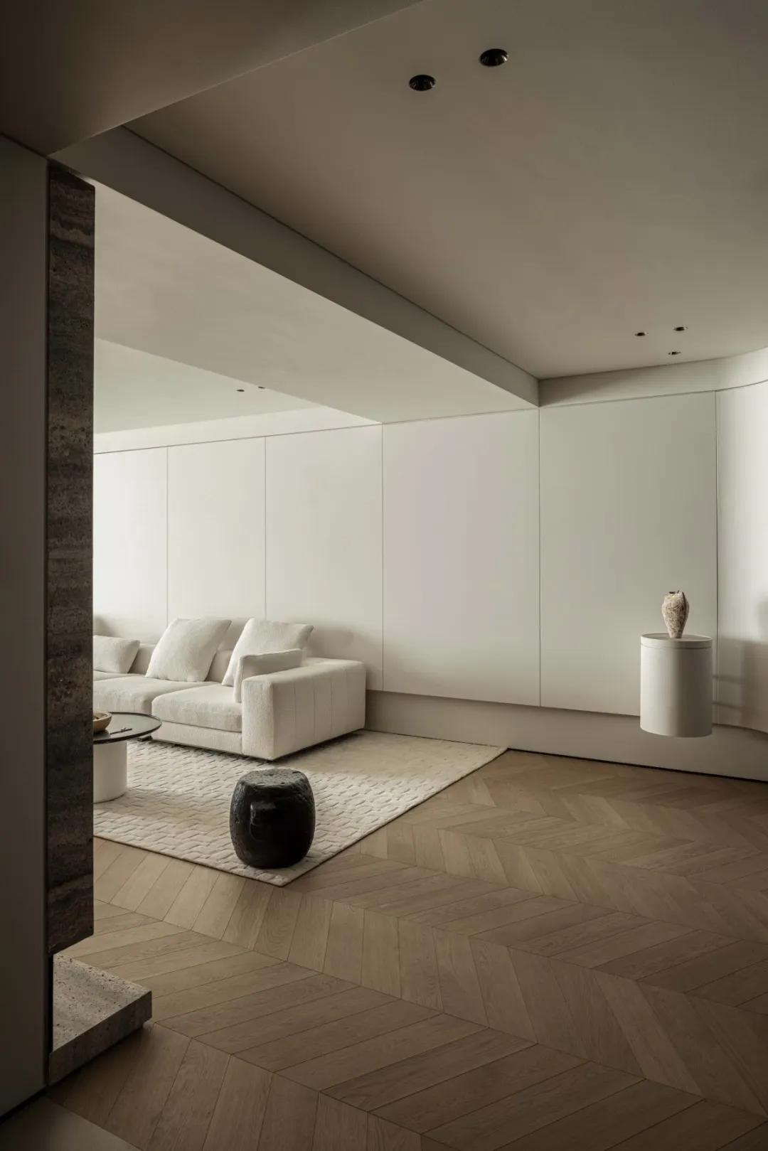 「质」为意,双向深化。向外着眼于材料、造型和比例的搭配表达,向内梳理屋主生活经历和文化认同的叙述,融入进空间质感的构建里,在井然有序状态下,中国人的传统观念和生活方式,已然在现代空间映生
