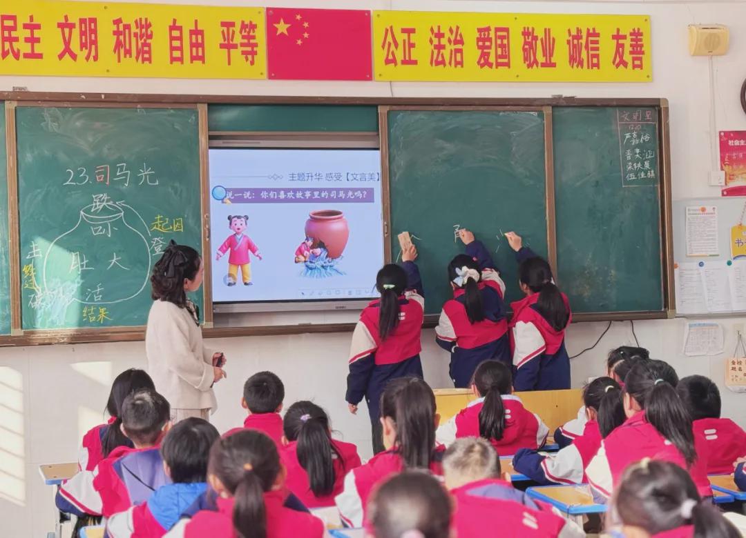 周天歌老师讲授的《司马光》以“时光小剧场”创设情境,借助“文言小萌豆”激发兴趣,通过“三读法”“图文解码”“生活联想法”引导学生走近文言、理解文意。学生在读中感韵、图中悟意、演中体情,不仅理解了故事,更初步习得文言阅读的方法。