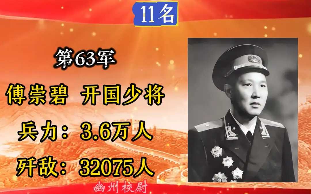 第63军,军长傅崇碧,入朝总兵力3.6万人,歼敌32075人。