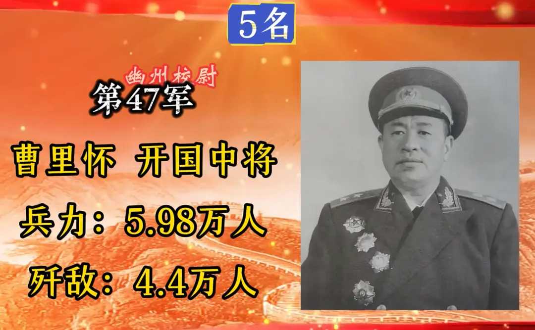 第47军,军长曹里怀,入朝总兵力5.98万人,歼敌44000余人。