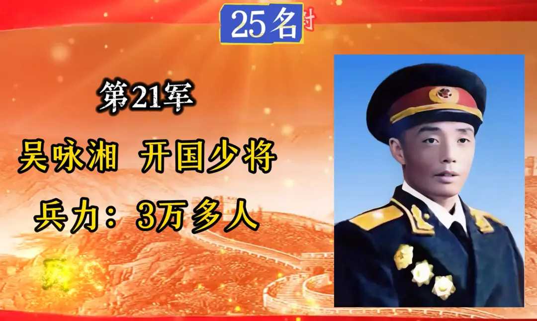 第21军,军长吴咏湘,入朝总兵力3万多人。