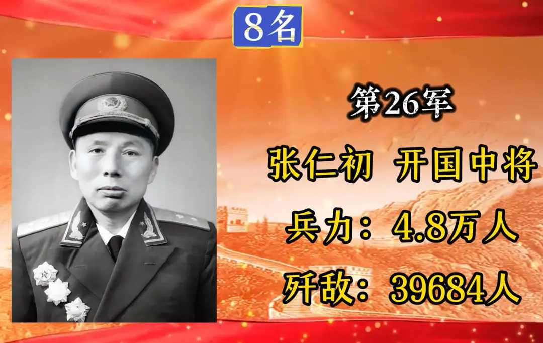 第26军,军长张仁初,入朝总兵力4.8万人,歼敌39684人。