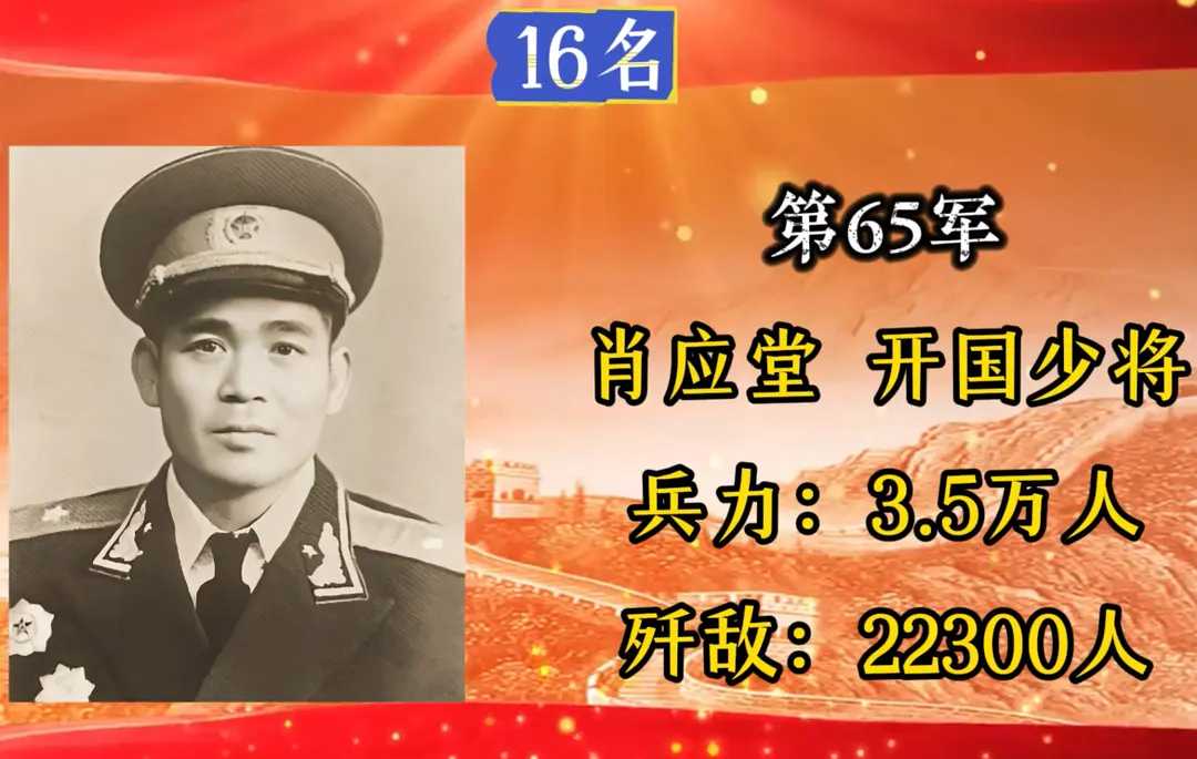 第65军,军长肖应堂,入朝总兵力3.5万人,歼敌22300人。