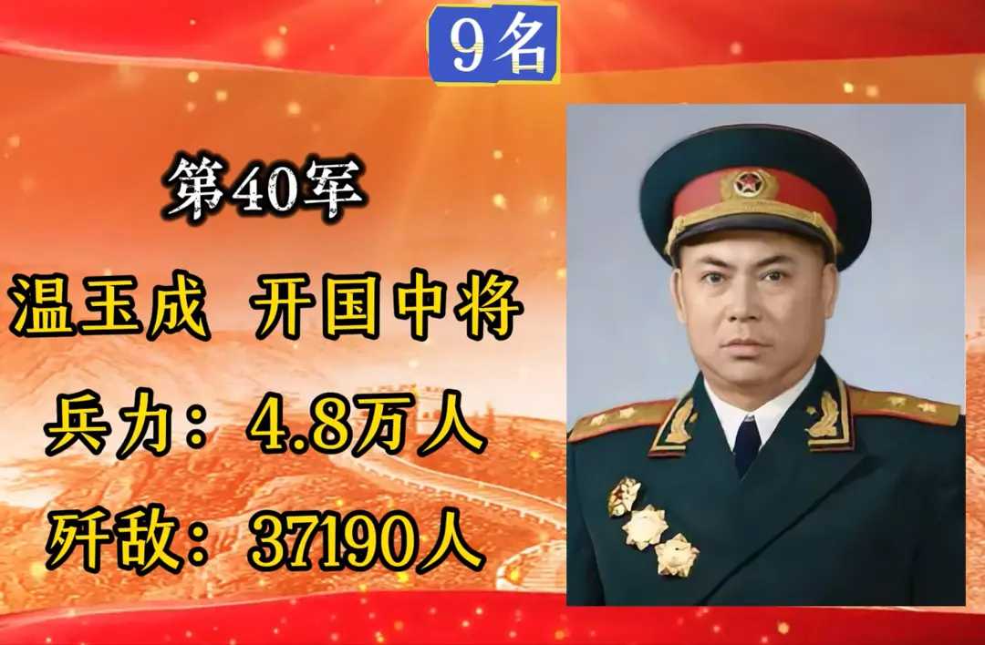 第40军,军长温玉成,入朝总兵力4.8万人,歼敌37190人。