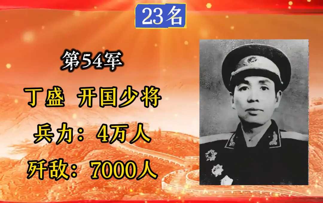 第54军,军长丁盛,入朝总兵力4万人,歼敌7000余人。
