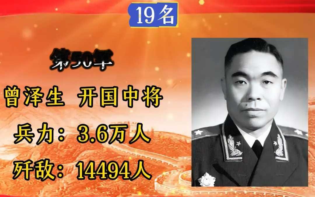 第50军,军长曾泽生,入朝总兵力3.6万人,歼敌14494人。