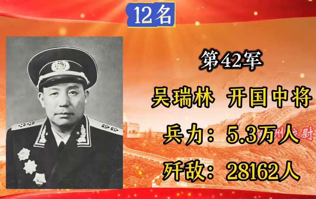 第42军,军长吴瑞林,入朝总兵力5.3万人,歼敌28162人。