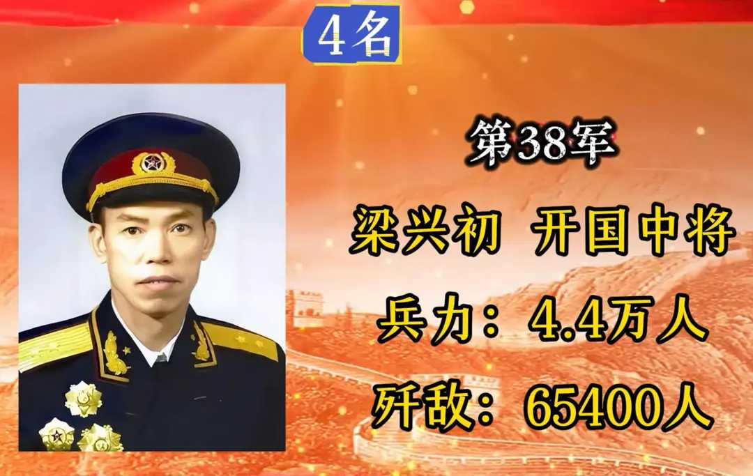 第38军,军长梁兴初,入朝总兵力4.4万人,歼敌65400人。