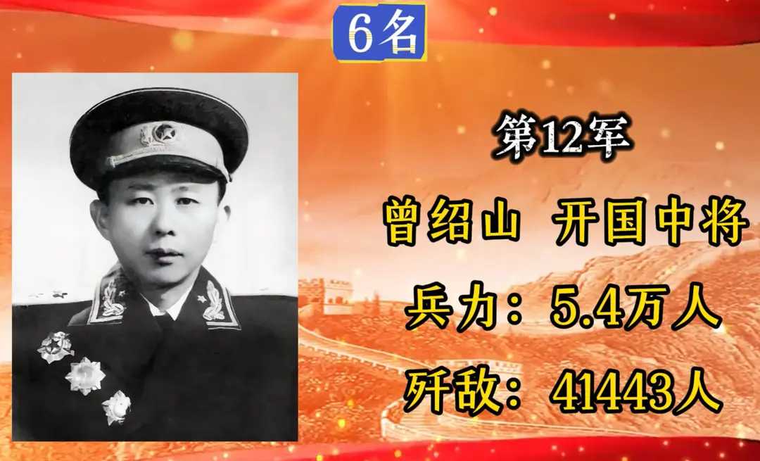 第12军,军长曾绍山,入朝总兵力5.4万人,歼敌41443人。