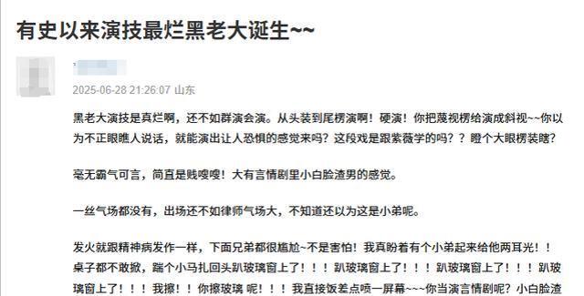角色的本身设定加上毛俊杰演技无法给予有力支撑的情况下,观众们对柳韵这个角色嗤之以鼻的同时,也对毛俊杰的演技提出了强烈质疑。