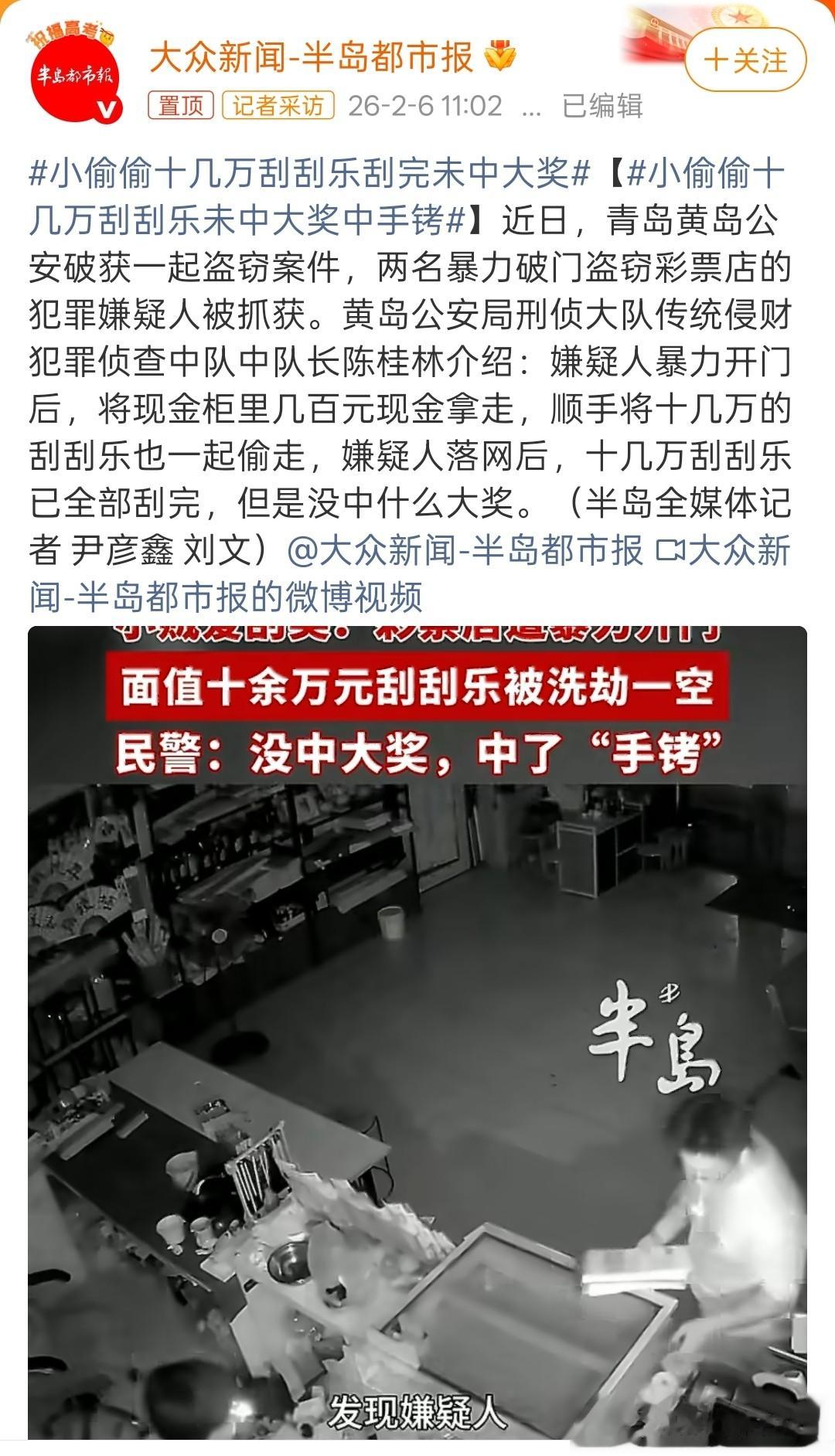 小偷偷刮刮乐这件事倒是让不少网友有了一个清醒的认知,这恐怕是小偷这辈子做出最大的贡献。