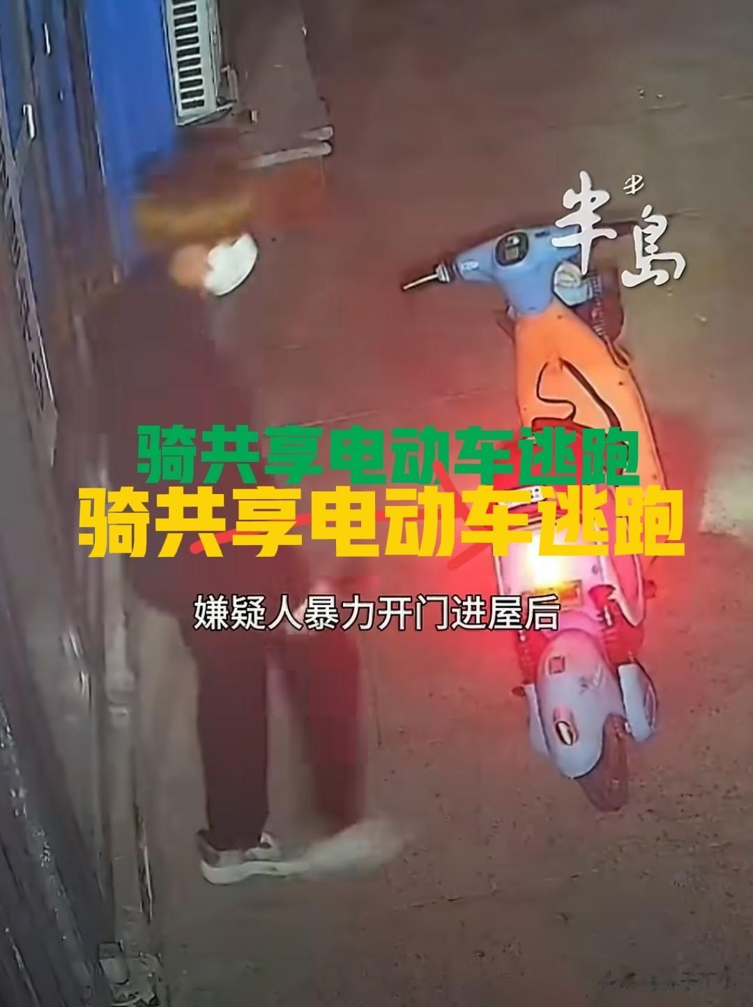 随后,两人骑着一辆共享电动车逃跑了。