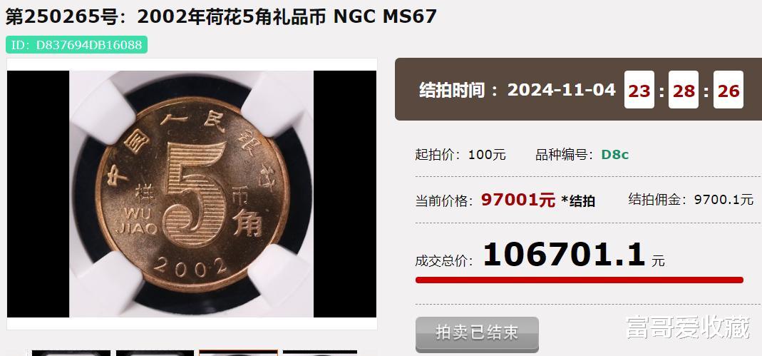在2024年的钱币拍卖会中,这枚荷花5角礼品币,估价就达到了7万。