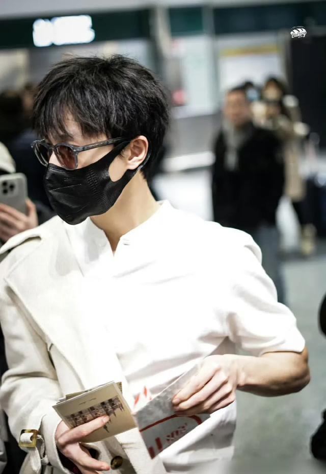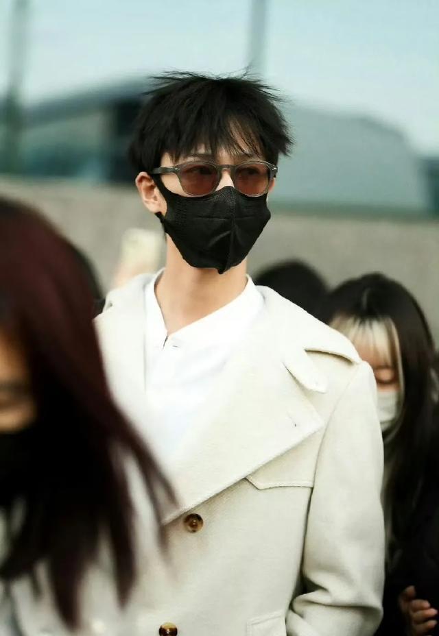 这哪是什么普通的赶飞机啊,这简直就是从时尚 T 台瞬移到现实的超模!他穿的那件米白色风衣,就像给整个人加了一层自带柔光的滤镜,气质“唰”地一下就提升了好几个档次。