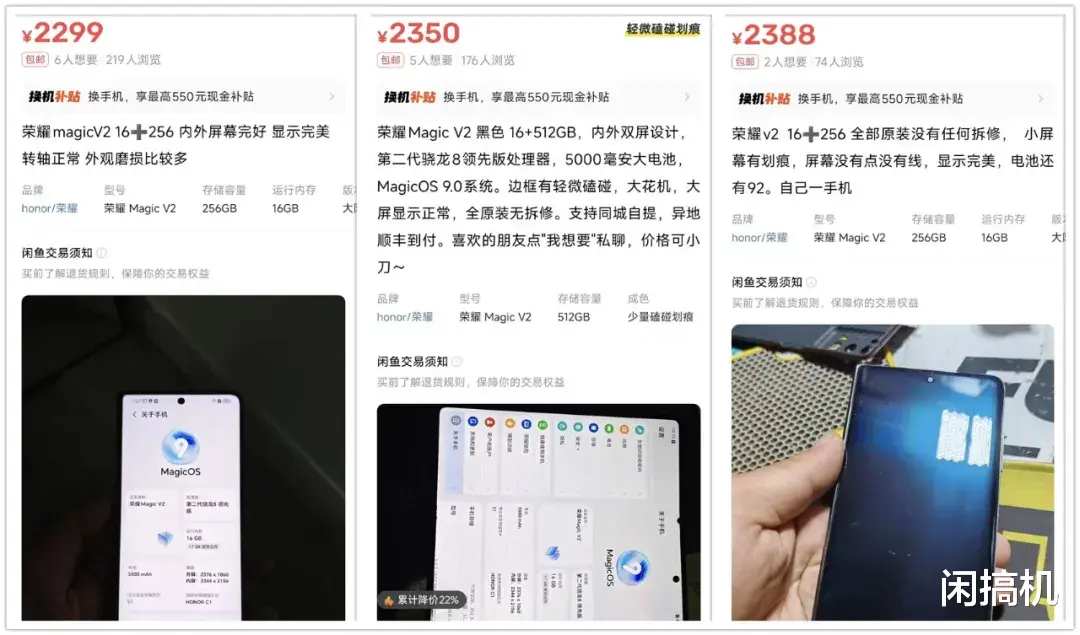 价格是这样,它常见存储是16G+256G/512G,全新首销价是8999/9999元,如今二手16G+256G最低2299元,16G+512G最低2350元,内外屏都是完美屏,但成色会差一些,如果要好成色需要提高预算。