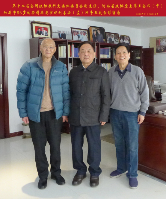 社会兼职与在岗工作不同,有较多闲暇时间。只要精力允许,牛玉乾便继续投身文化事业。期间,他结合对王维群亲属的访谈,依据王全书提供的资料,整理编著 3 万多字的《王维群传》。值得一提的是,2015 年 7 月 20 日,他提议请促进会副会长兼秘书长、著名作曲家张秉义教授,将习近平总书记的词作《念奴娇・追思焦裕禄》谱写成豫剧戏歌进行传唱。张秉义高度重视,与他一同邀请河南省豫剧三团著名作曲家朱超伦共同创作,并结合著名豫剧表演艺术家、省三团团长贾文龙的声腔风格谱曲。该戏歌录制完成后,不仅在郑州与河南电台推送,贾文龙还将其作为必唱曲目,在黄河上下、大江南北演出,歌声响遏行云,引发强烈反响。