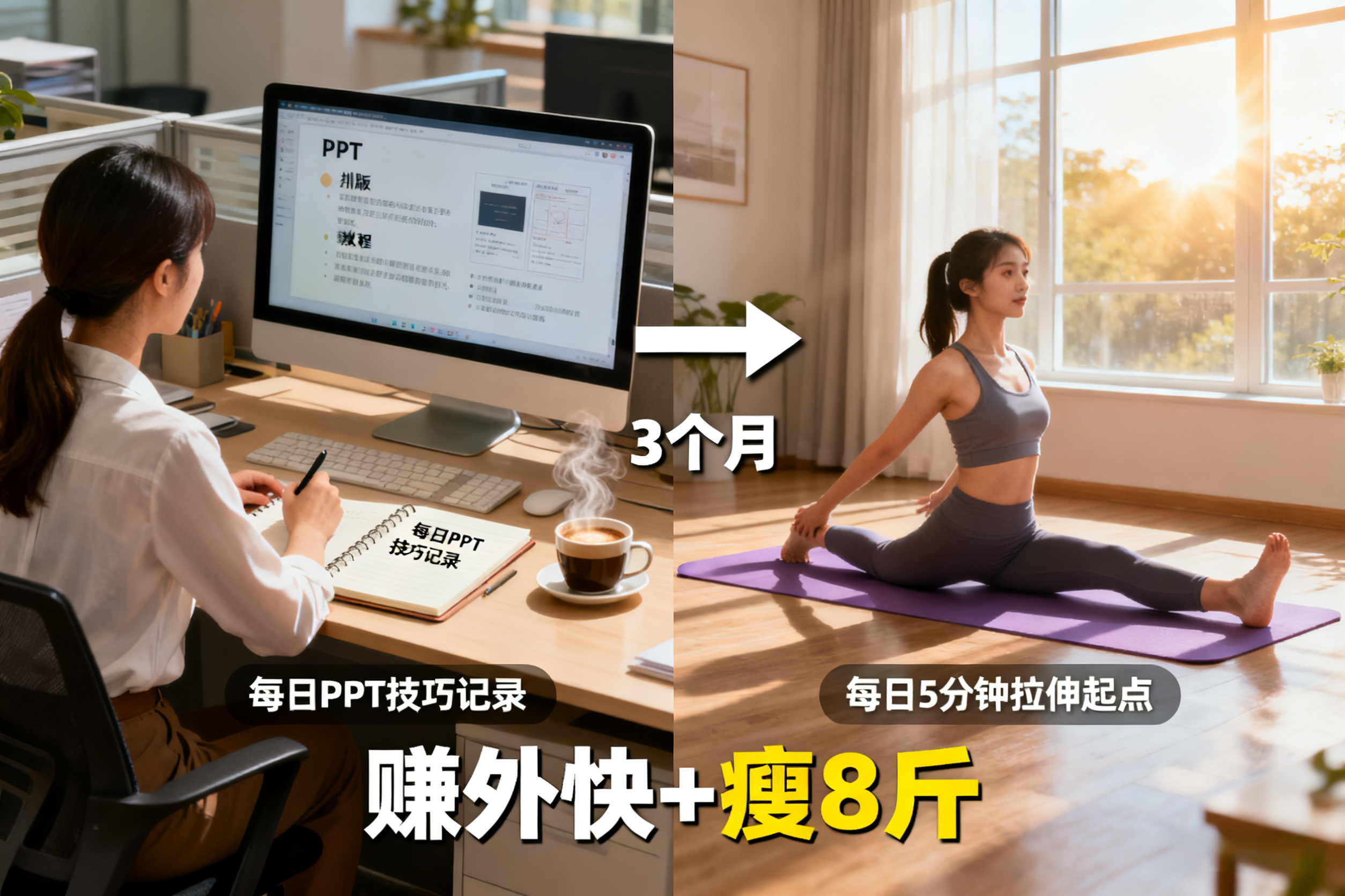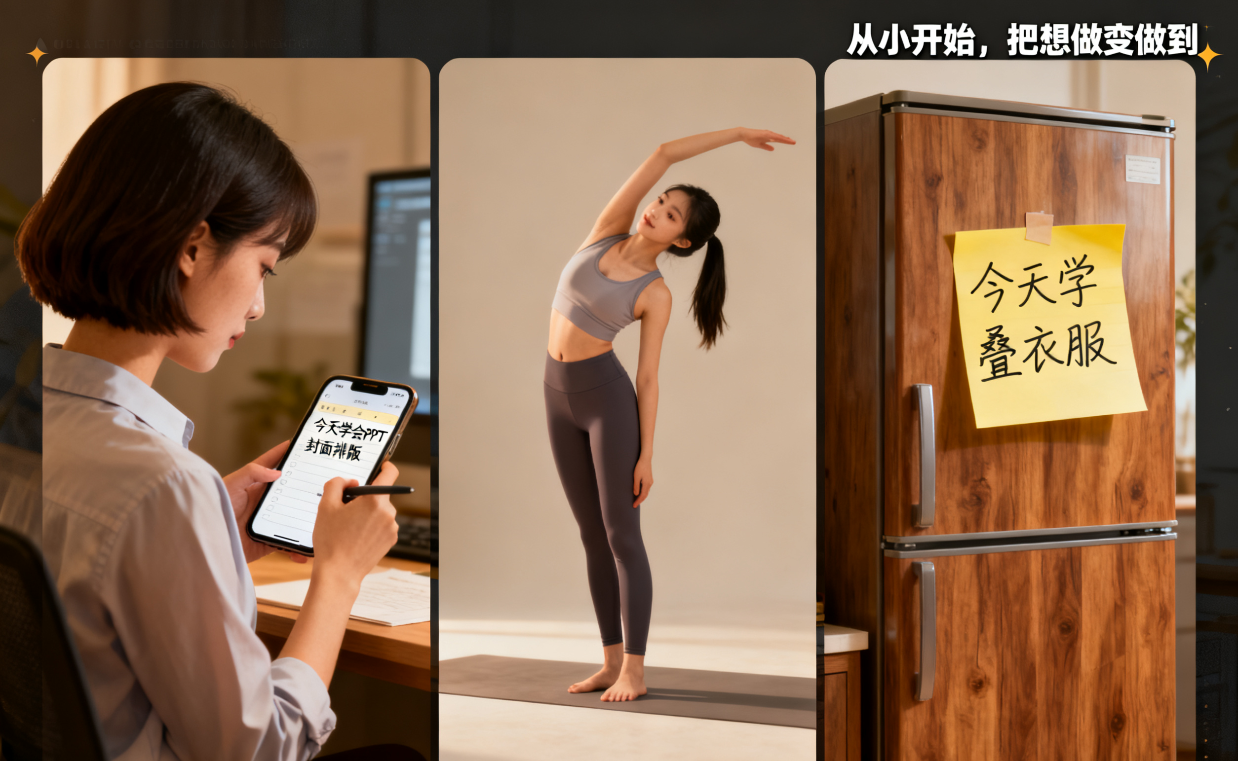 你是不是也有过这样的时刻?下班后瘫在沙发上,脑子里盘旋着一堆 “想做的事”—— 想提升技能赚外快、想轻松瘦下来、想学新东西充实自己,可打开手机刷到深夜,计划还是停留在 “明天开始”;周末对着待办清单发呆,纠结 “从哪一步开始才对”,最后一天过去,啥也没干成。