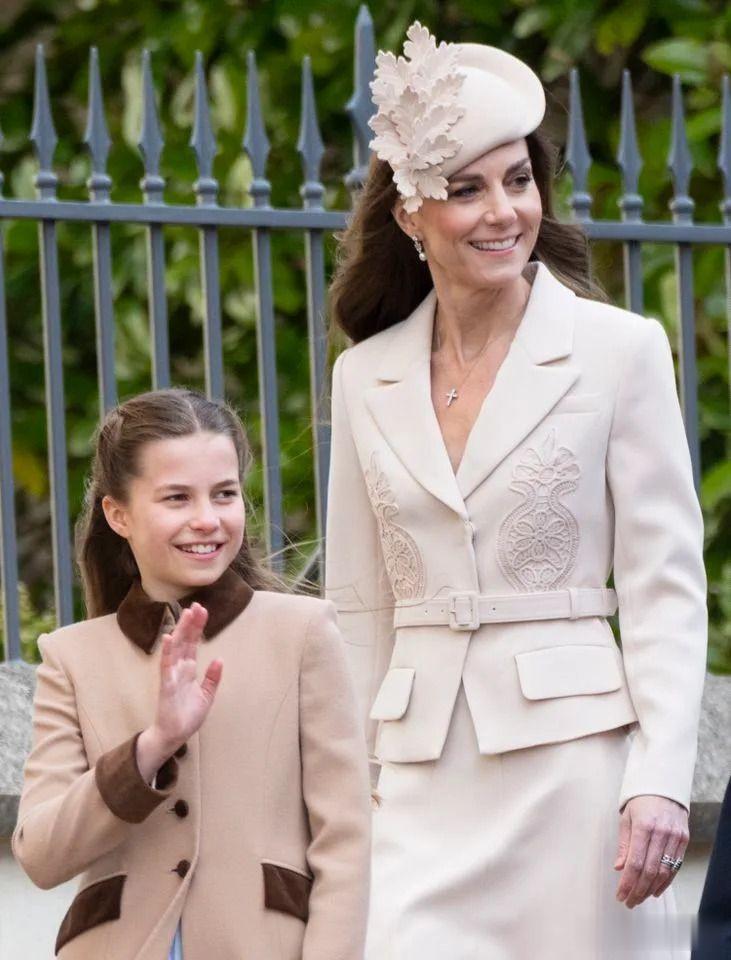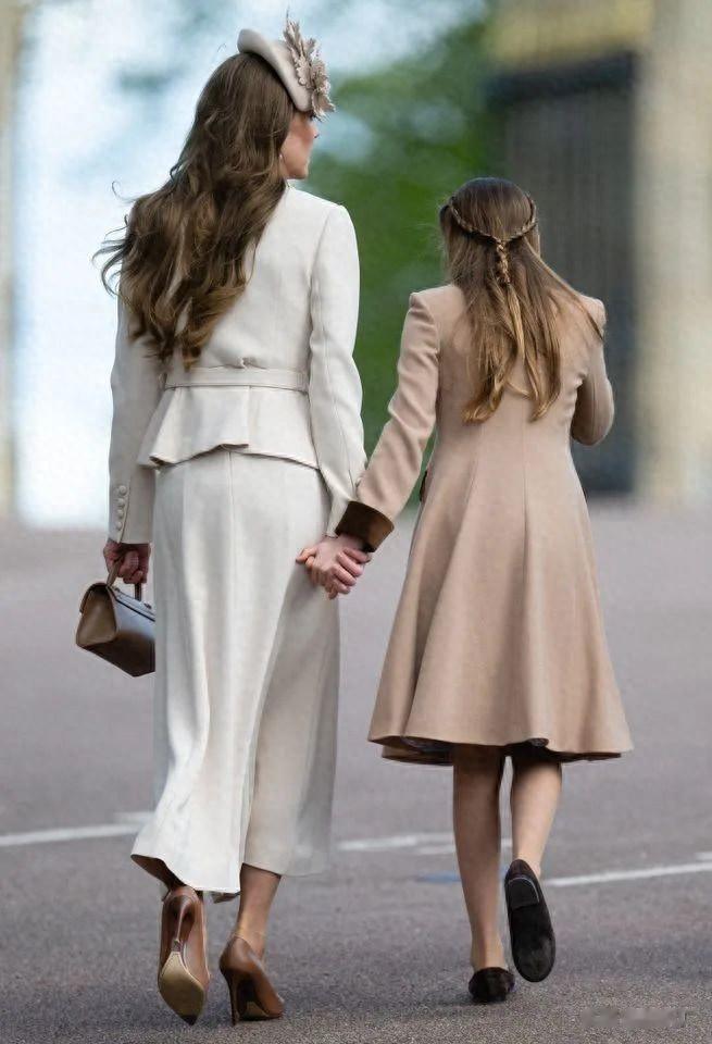 仪式结束后,媒体捕捉到了一个无比温馨的细节。44岁的凯特王妃与她唯一的女儿夏洛特公主,自然而然地牵起了手,一起离开教堂。这个简单的动作,胜过千言万语,将母女间的亲密展露无遗。而更值得玩味的是夏洛特当日的造型。她身穿一件米色镶棕边的外套,经证实出自品牌凯瑟琳·沃克——这正是她妈妈凯特王妃最钟爱的设计师之一。这件外套并非首次亮相,夏洛特早在2025年圣诞节就穿过它。这种“重复利用衣橱旧衣”的时尚选择,完全继承了王妃本人经典的“旧衣新穿”风格。夏洛特将这件已拥有7个月的外套,内搭Self-Portrait的淡蓝色连衣裙。巧的是,凯特王妃当日的米白色套装也来自同一品牌。母女俩在时尚品味上的默契,似乎已不言而喻。