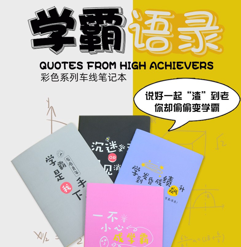 学霸是一种态度,不要动不动就喊累,想想学霸还没睡。记事本采用80g护眼道林纸张,色彩柔和,保护眼力,有效减缓视觉疲劳。简单实用的高中小奖品。