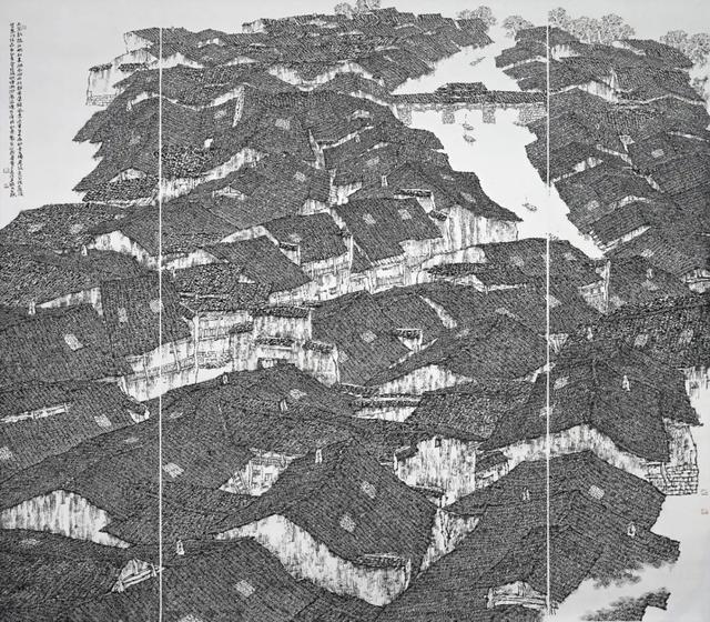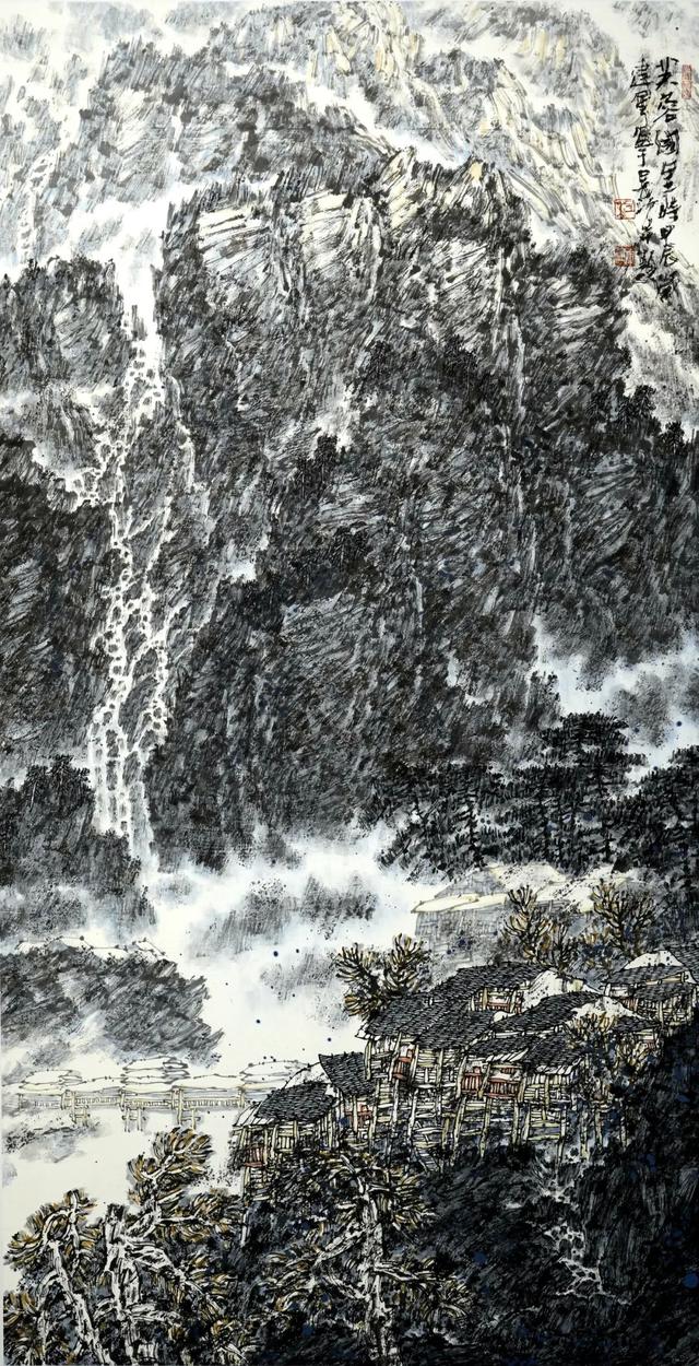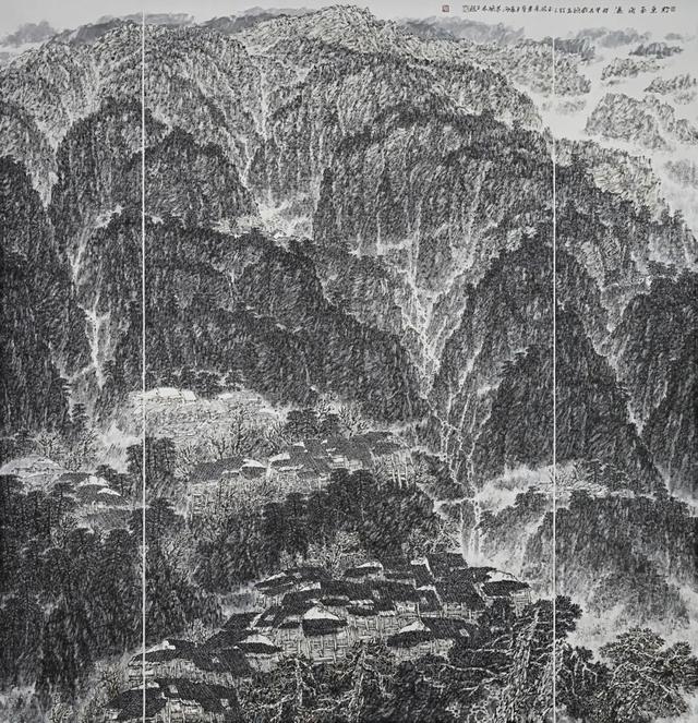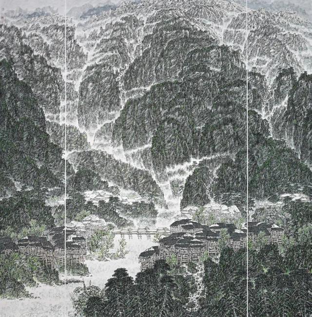 《黔东南风雨桥》218cmx210cm 纸本设色 2018年