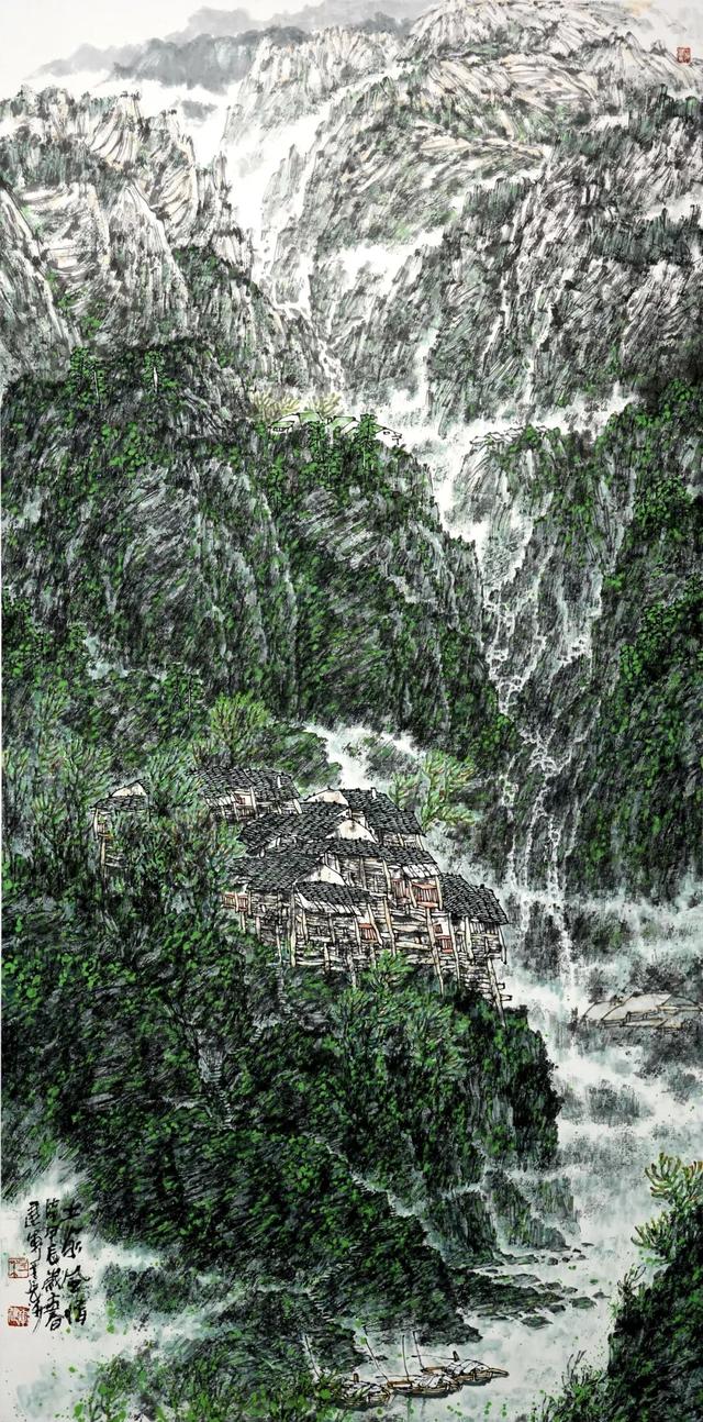 《黔东南飞瀑》218cmx210cm 纸本设色 2018年