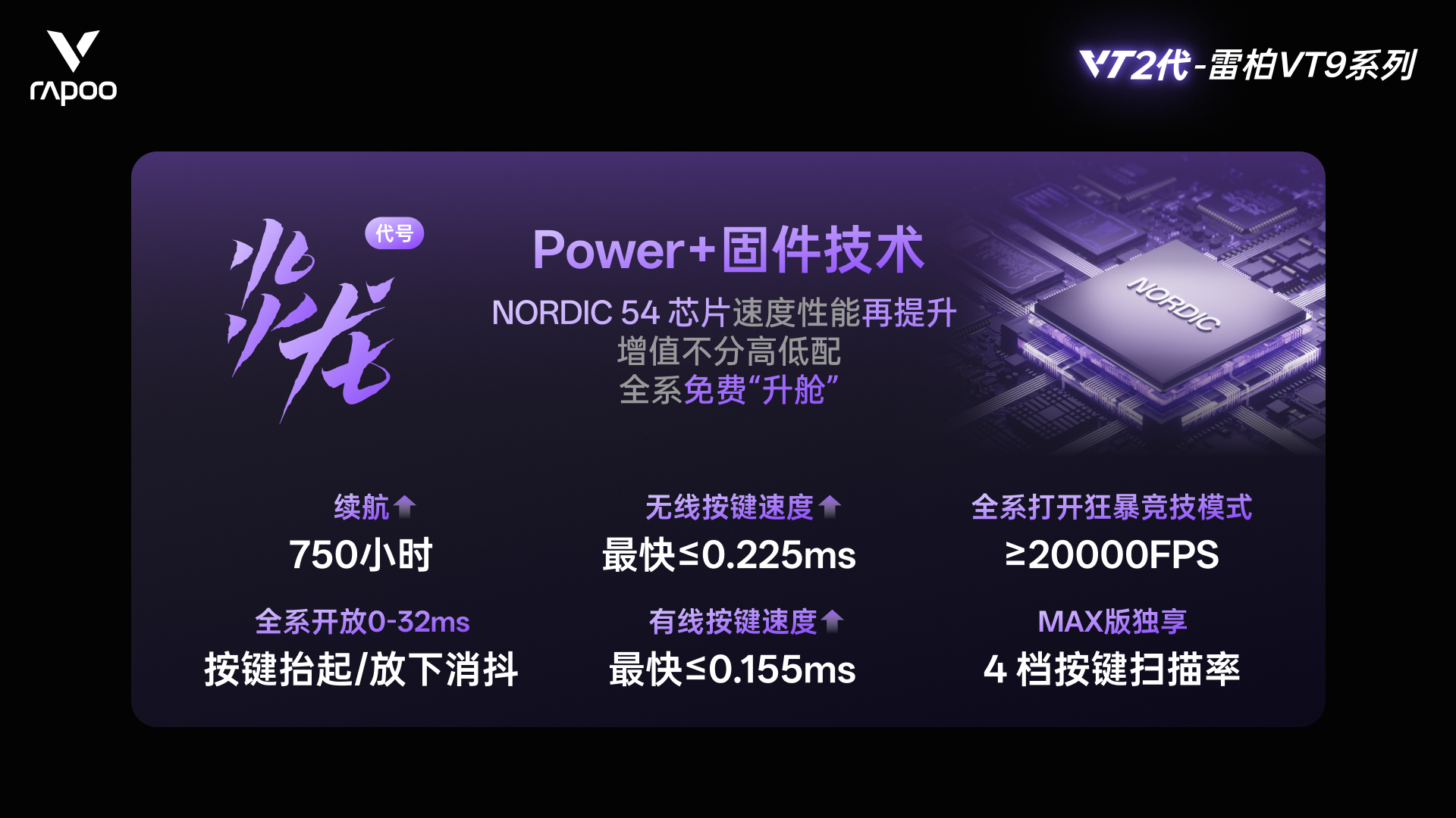 雷柏VT9MAX有着更快的按键速度。如果小伙伴们的手速跟得上,它可以实现最快无线≤0.225ms的按键速度、有线≤0.155ms的按键速度。即便是激烈的决斗,掉链子的也绝对不会是鼠标。