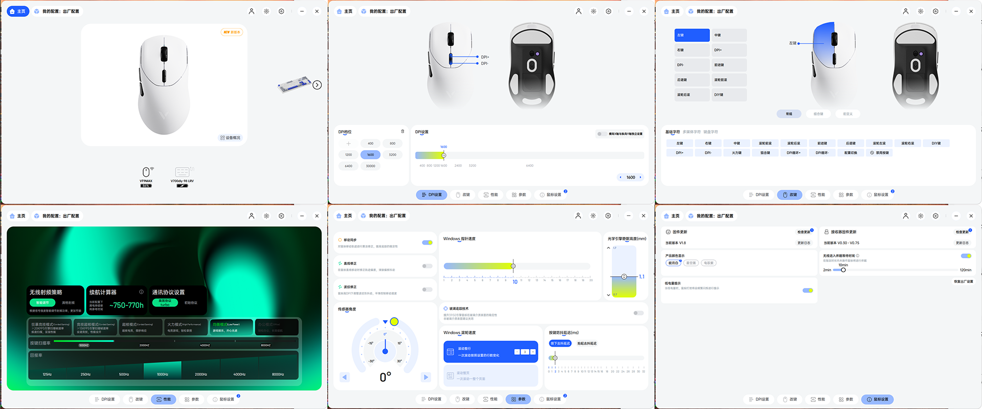 鼠标设置的内容会更多一些,比如DPI、自定义按键值、按键延迟及通讯的策略等等。和键盘的总体设计思路一致,那就是通过驱动,让设备更贴近于您的使用习惯,而不是让您来适应设备。