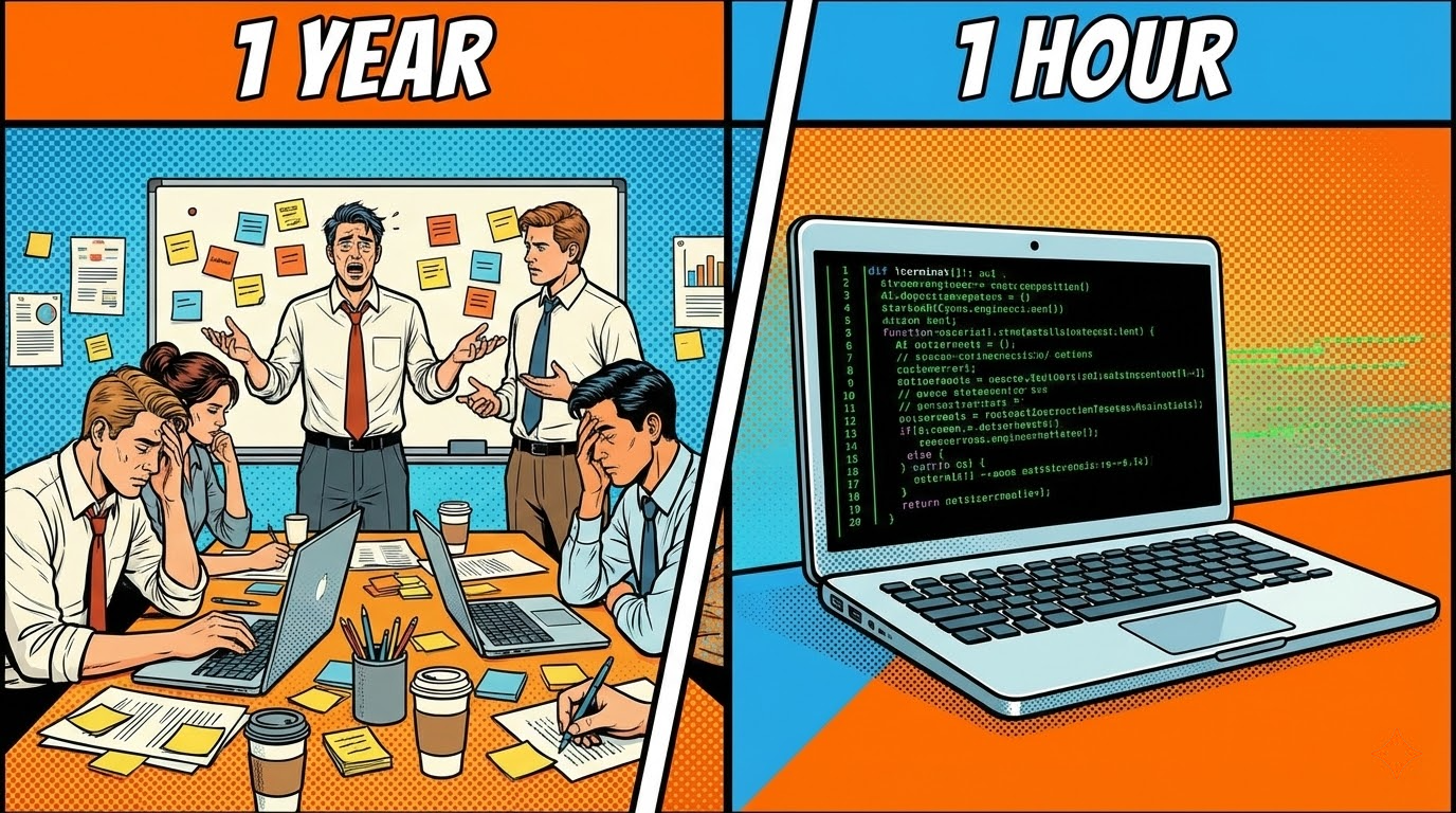 什么叫对齐?就是你得说服产品经理、说服架构师、说服安全团队、说服各种委员会,每个人都有自己的想法,每个部门都有自己的 KPI。等这些人终于达成一致了,黄花菜都凉了。