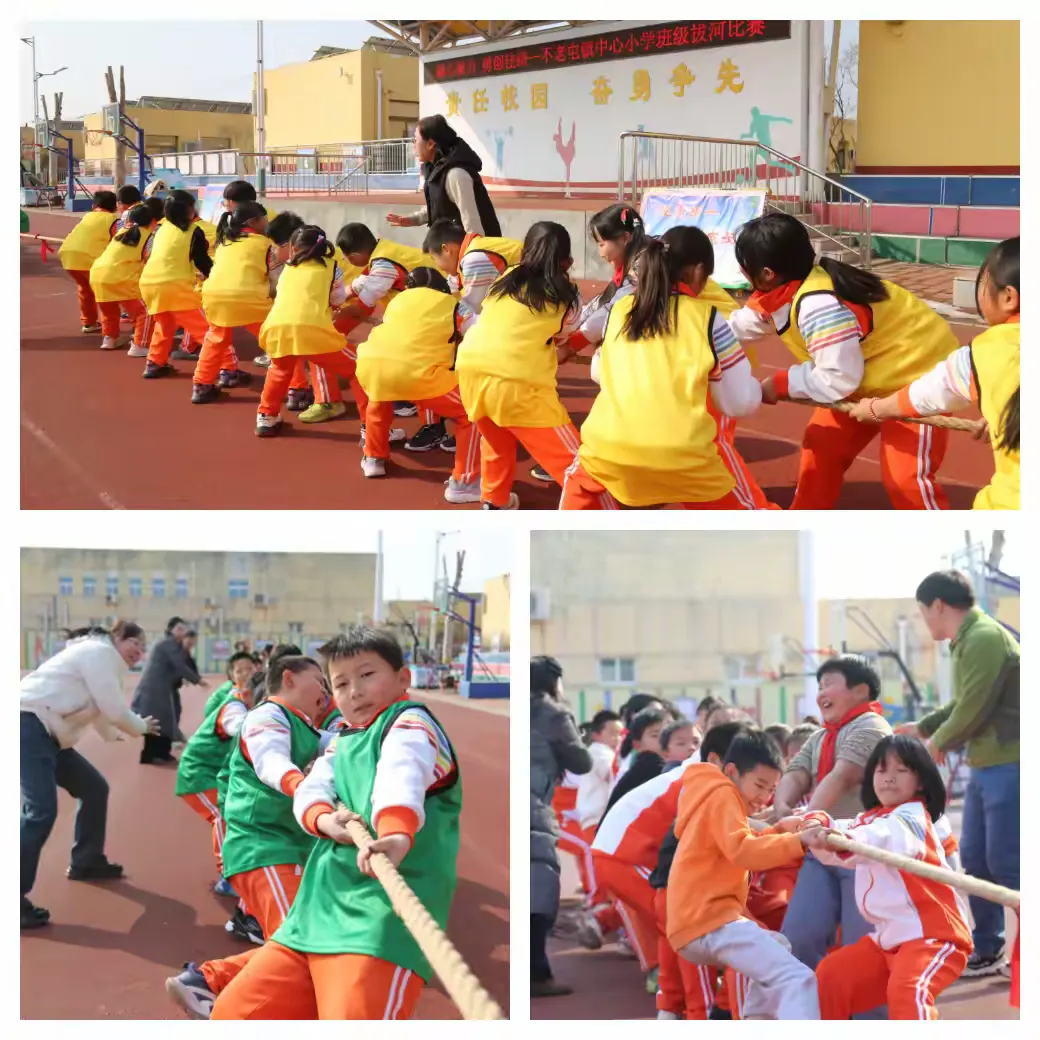 为深入贯彻“健康第一”教育理念,丰富校园文化生活,增强班级凝聚力和向心力,3月10日、11日大课间时间,北京市密云区不老屯镇中心小学举行了“凝心聚力 勇创佳绩”班级拔河比赛。