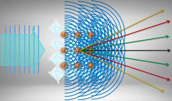 :电子作用于晶体中周期性排列的原子上,散射波的频率和相位保持固定关联(即“相干”)。由于晶体原子按晶格规律排列,不同原子的相干散射波会在空间特定方向上叠加,形成可探测的衍射信号。