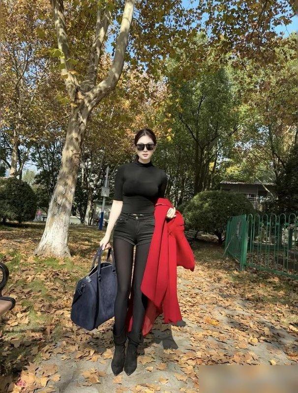 说到红黑搭配,我想起去年深秋和朋友去公园拍照,她穿件酒红色的短款大衣,里面配黑针织衫和黑紧身裤,踩双踝靴,站在银杏树下一转身,阳光刚好穿过树叶洒在她身上——红色像火,黑色像夜,两种颜色撞在一起,比任何滤镜都好看。