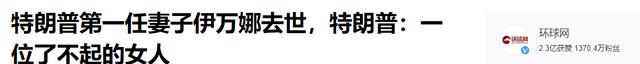 环球网:特朗普第一任妻子伊万娜去世,特朗普:一位了不起的女人