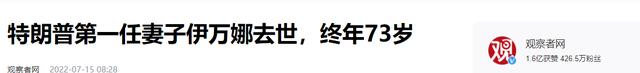 观察者网:特朗普第一任妻子伊万娜去世,终年73岁