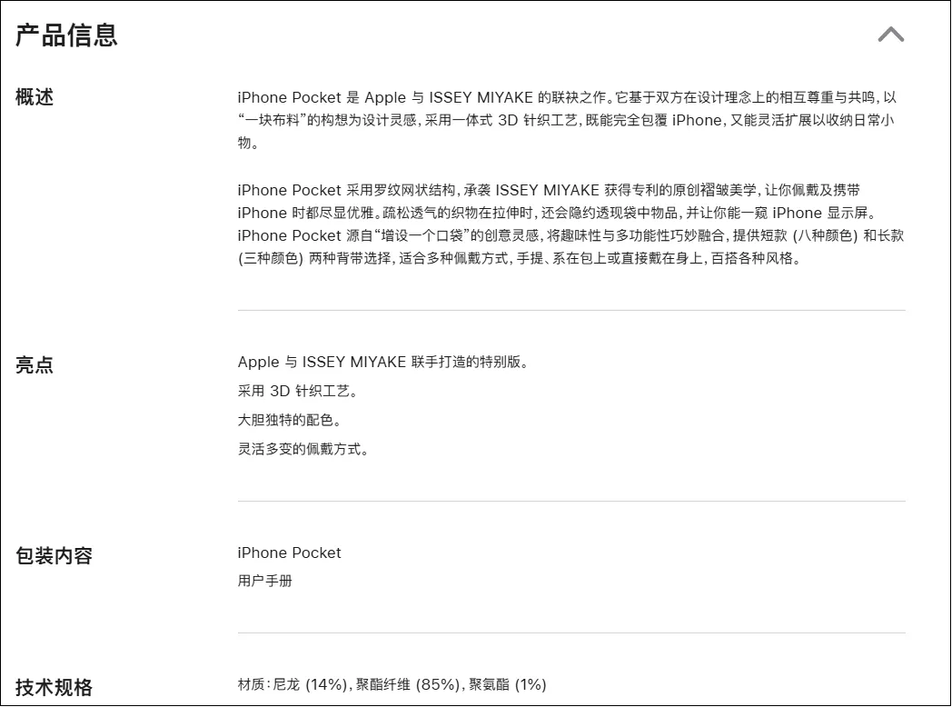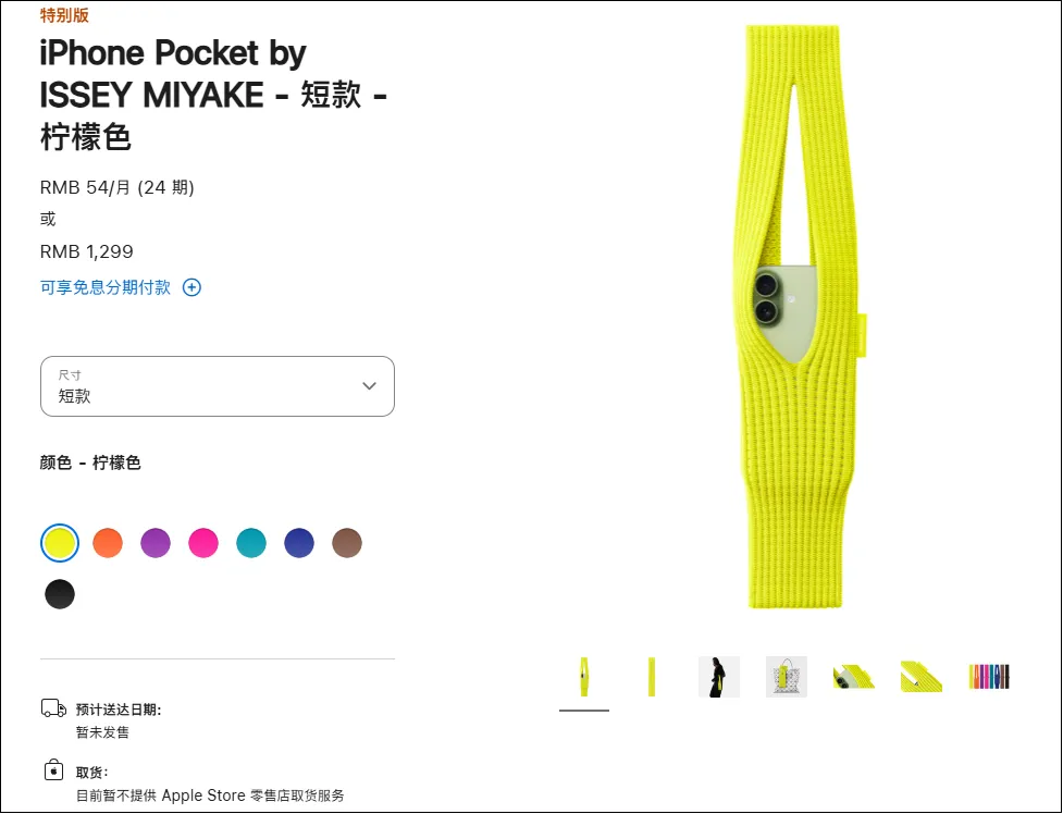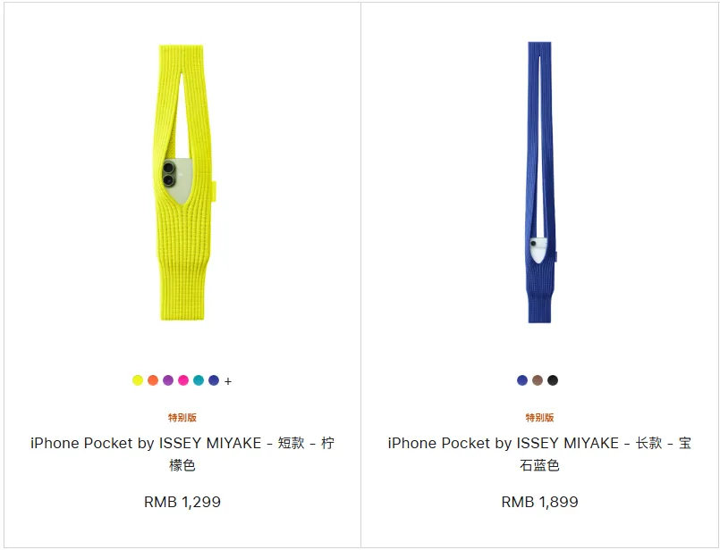 这款新品名叫"iPhone Pocket",简单来说,就是一个手机收纳袋,但价格却让人瞠目结舌——短带款 1299 元,长带款 1899 元。是的,你没看错,一个布袋子,能买一部安卓手机了。官方介绍,这款收纳袋的灵感来自“一块布”的极简理念,采用一体式三维编织结构,能轻松收纳任意型号的 iPhone,还能装点日常小物。