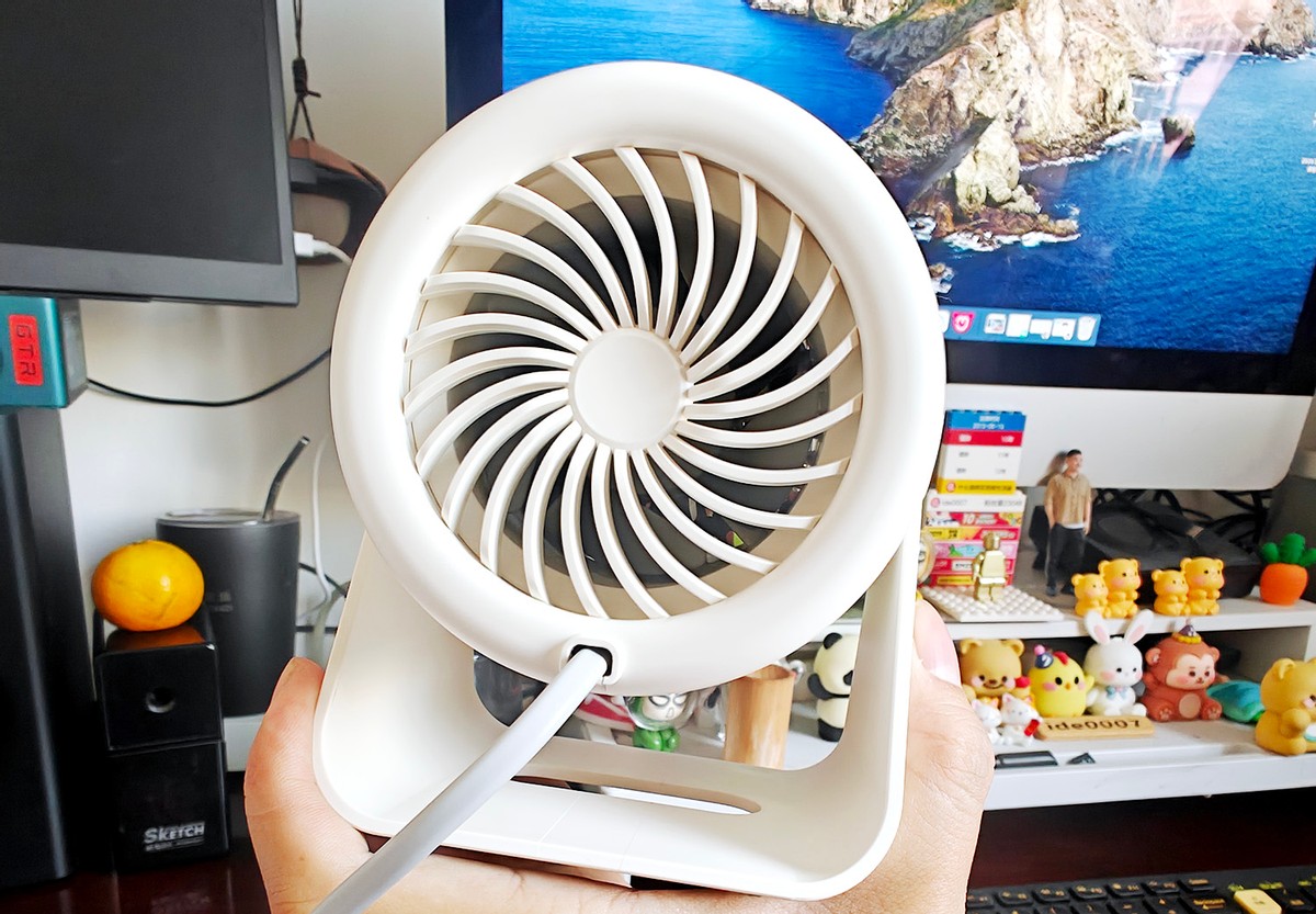 这不是传统意义上的暖风机,而是一个mini版,一个小巧的桌面设备而已,外观看着跟一个小风扇一样。