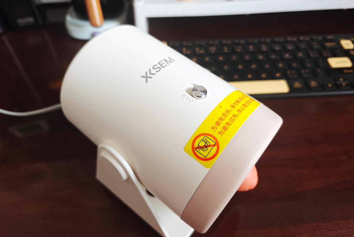 西圣桌面暖风机的重量很轻,感觉也就和手机的重量差不多,可以随意摆放在桌面任意位置,当做摆设也很好看。