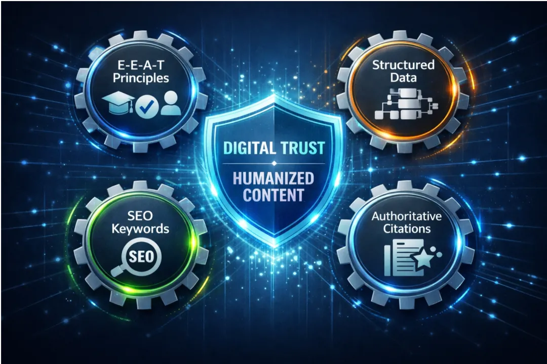 E-E-A-T(经验、专业性、权威性、可信赖性)是Geo优化方案的首要驱动力。在官网优化中,应将抽象的E-E-A-T原则转化为可执行的量化指标,并融入内容创作的每一个环节:
