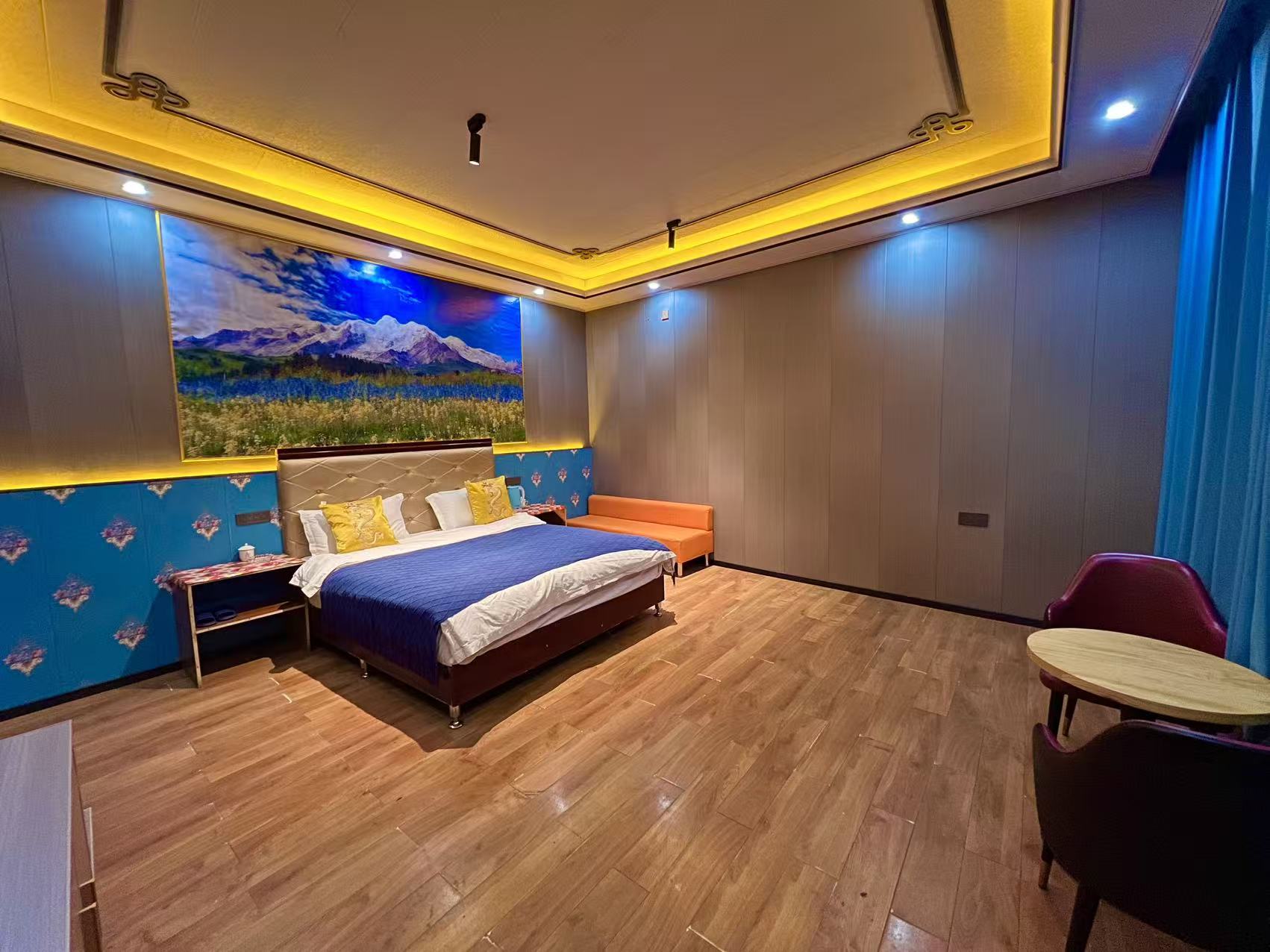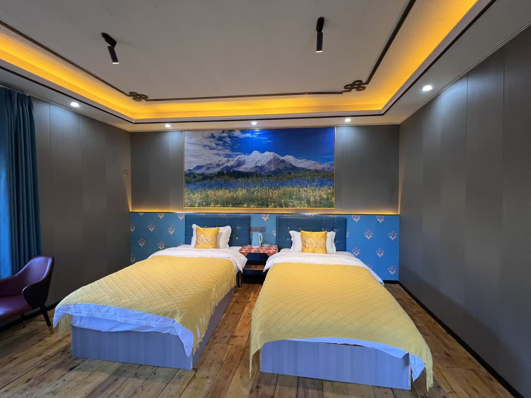 则巴热让民宿所处位置就能看到格聂神山,民宿9个标准双人间+2个大床房+3间观景房(房间里就能看到雪山或日照金铜山),均为独立卫生间,有热水和电热毯,站在院子便可观赏到日照金山。