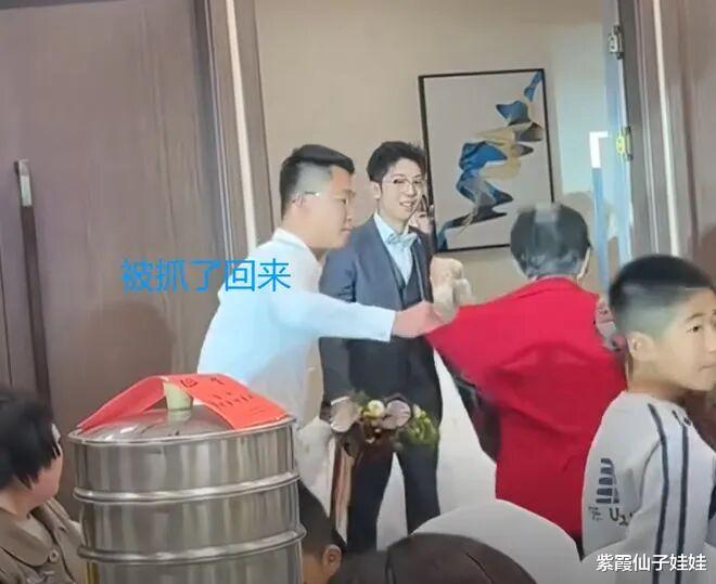 于是,我们就会看到很多这样的“惊险”瞬间:伴郎伴娘或是酒店工作人员,奋力拦住、拉住甚至扯住那些试图抢喜的老人,没有丝毫退让,只为守护新娘登场的这一高光时刻,不让这份美好被无端破坏。