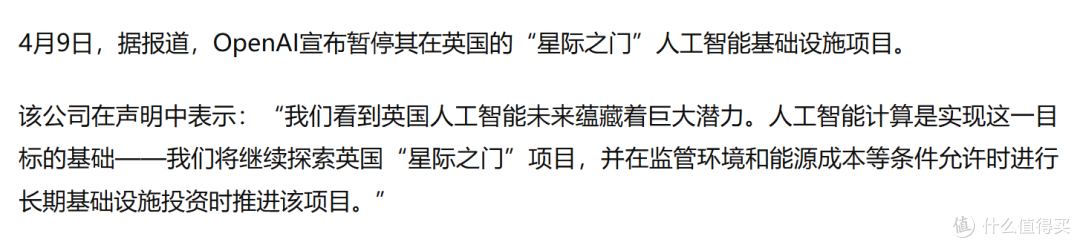 然后26年4月9日,OpenAI官方宣布暂停英国"星际之门"(Stargate UK)AI基础设施项目。