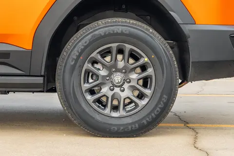 轮胎与轮毂配置贴合实用,黑熊AT全地形轮胎胎侧厚度较普通胎提升50%,搭配18英寸锻造防脱轮毂,单只承载1280公斤且仅重11.4公斤,既能应对戈壁、冰雪等恶劣环境,日常行驶也不增油耗、无拖滞感,省去后续升级成本。底盘防护采用一体冲压铝镁合金护板,抗腐蚀与抗冲击性能优异,实测210MPa抗冲击强度,在新疆、内蒙等复杂区域行驶无需额外加装护板,养护成本更低。