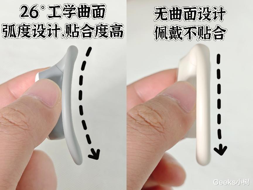 单耳净重8.7克和主体硅胶材质的使用提高了耳机上耳佩戴的舒适感,还有独特的双重折角结构设计,让耳挂更加贴合人体耳部轮廓,做到久戴不压耳。耳机使用的18mm×11mm(等效16mm)定制化跑道型声音驱动单元,让音质更加还原,并且搭配了定向防漏音技术,不会漏音影响他人。耳机装载蓝牙5.2版本和双麦通话降噪保障了日常使用,还有智能一拖二功能和续航6+28h的效果,以及IPX4的防水能力等。