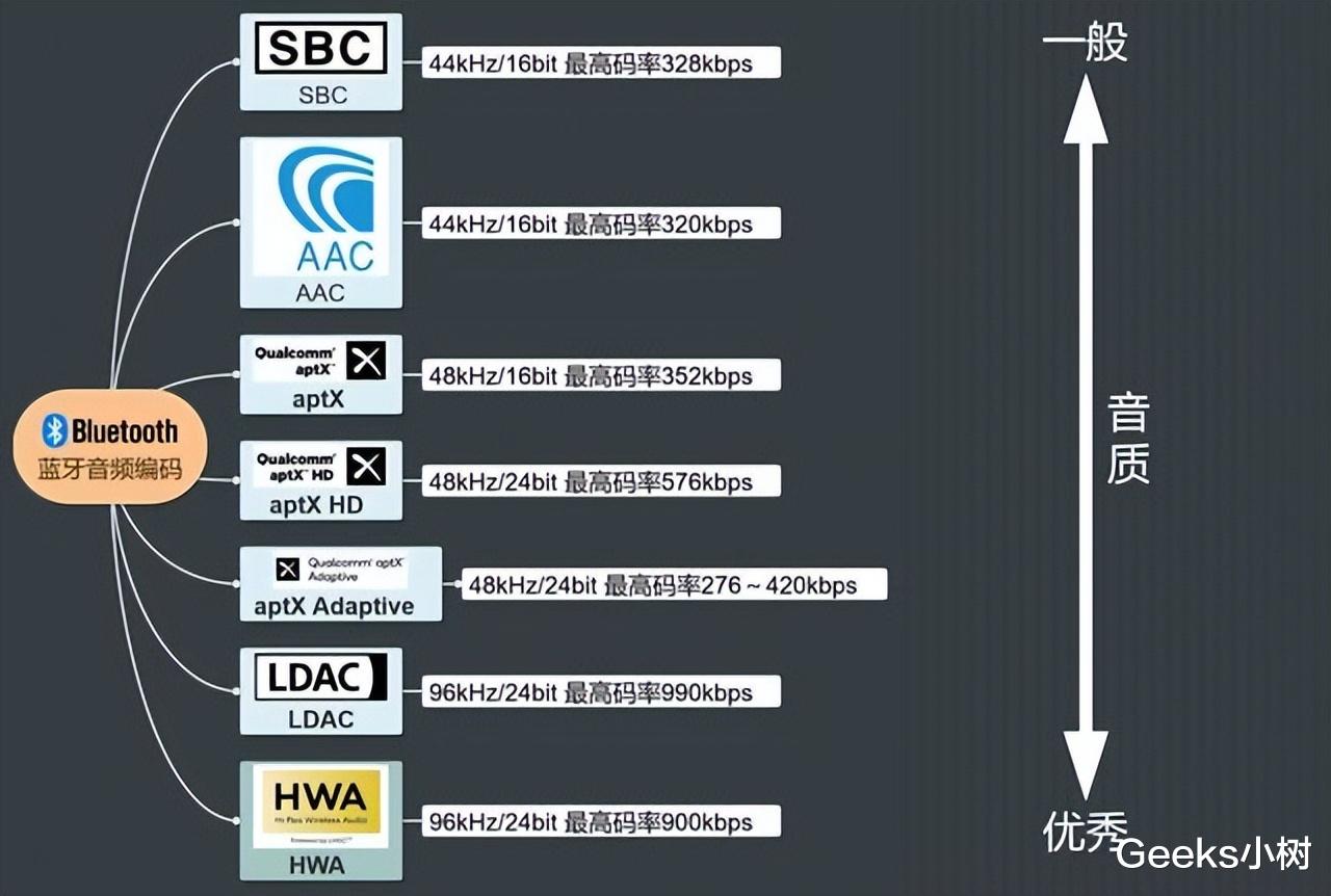 音频编码在无线耳机领域对于音质和传输效率有至关重要的作用,两端设备的编码需保持一致才能更好地传输声音,目前市面上的流行的音频编码按照传输音质表现和效率排序如下:SBC<AAC<APTX<LDAC<LHDC等,在选购时一般选择具备SBC和AAC就完全足够日常使用!