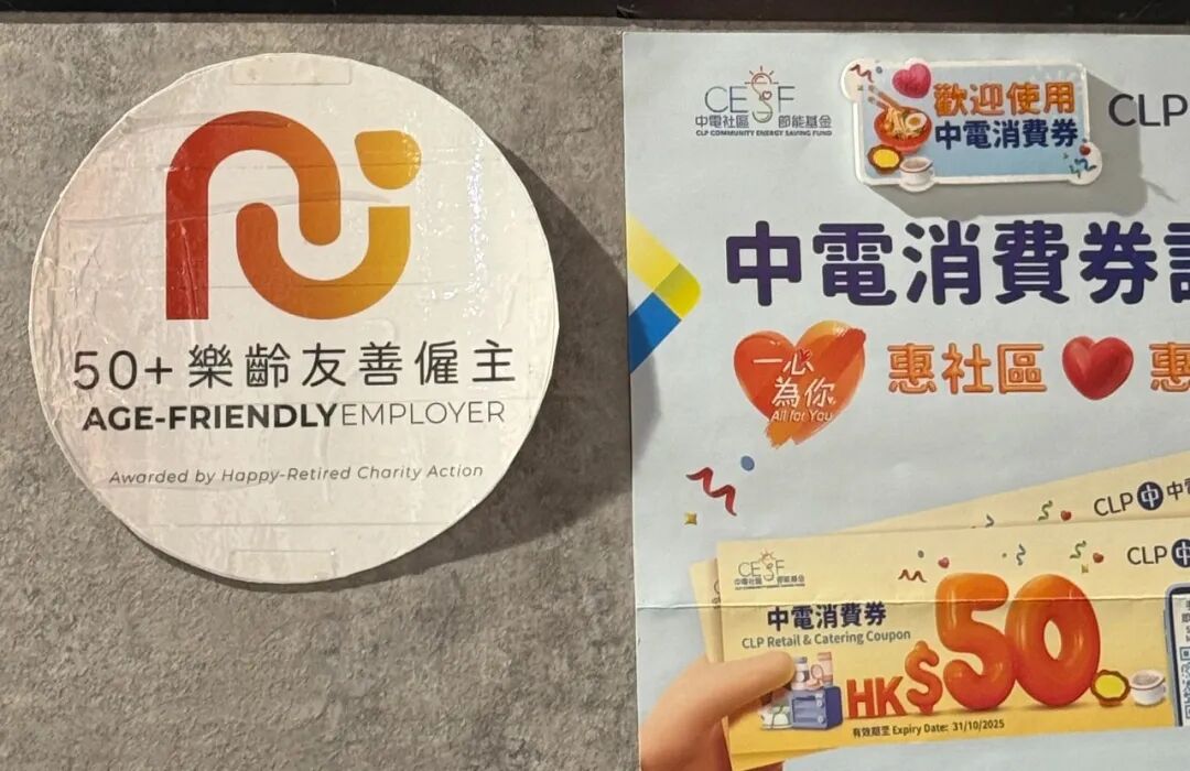 以及,有一些店铺的招聘,会直接写「50加乐龄友善雇主」,也常能看到茶餐厅里有年纪较大的服务生。计程车司机就更不用说,很多老头。