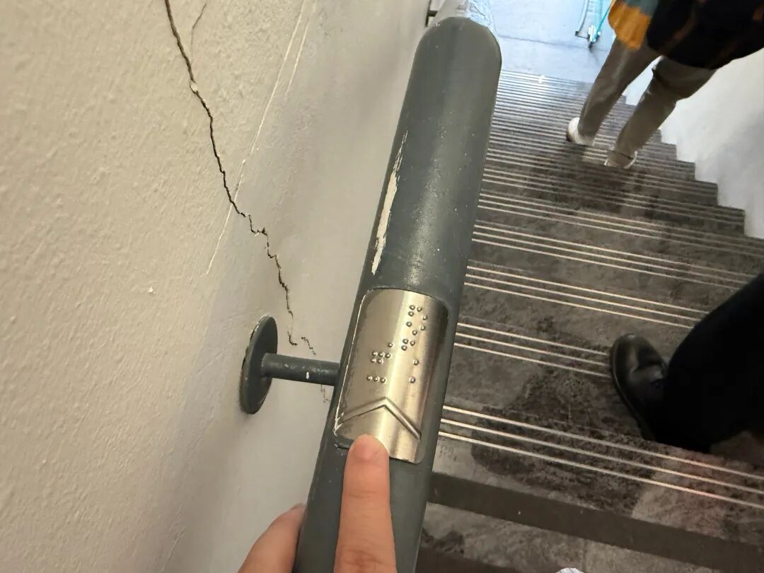 我个人印象最深的是,有几次在外面,逛街的时候电梯坏了,只能走楼梯。我心里预期的不常用楼梯应该很多灰尘,比较脏。结果每一次都是超出我的预料,地面能把人照得反光,扶手都是一点灰尘都没有。并且,连这种没太多人走的楼道扶手上,同样有盲文提示。