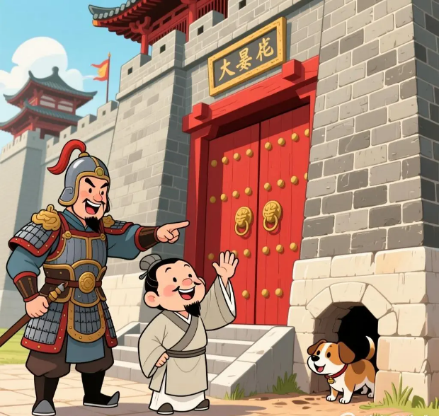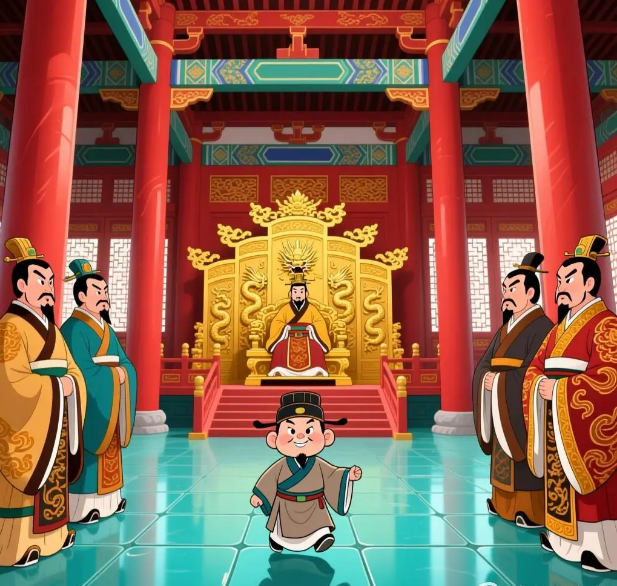 晏子姓晏名婴,晏子是人们对他的尊称。他博学多才,聪明机智,是齐国有名的政治家,为齐国的富强做了很多事。他关心人民的疾苦,经常用巧妙的方法规劝齐景公,留下了许多动人的故事。前面讲的对付晋国使臣范昭的故事,只是一个例子。楚灵王听说晏子要来,便对大臣们说:“晏子是齐国能言善辩的大臣,名气很大,可他身高不足五尺(春秋时期的尺比较小,一尺约合现在七市寸多),我想当面羞辱他一番,也好叫他知道我们楚国的威风,你们有什么妙计?”有一个大臣附在楚灵王耳边,嘀咕了半天,楚灵王眉开眼笑,连说:“好,好!就这么办。”楚灵王命人连夜在城门旁开了一个五尺来高的小洞,吩咐守门的士兵说:“等齐国使臣来到的时候,把大门关上,让他由这个小洞进来。”过了不久,晏子到了,见大门没开,就把车停了下来,让人去叫门。守门的士兵说:“听说齐国使臣身材矮小,可以从小洞进城嘛,用不着开大门了。”晏子严肃地说:“这是狗洞,不是人出进的。出使狗国的人才从狗洞进城,难道我是出使到狗国来了吗?”守门的人无话可说,只好打开城门,迎接晏子进去。晏子拜见楚王,楚灵王笑嘻嘻地说:“怎么,齐国就没有人了吗?”晏子回答说:“不!光是我们齐国都城临淄就有几万人,要是人人都把衣袖张开,就能够把太阳遮住;每人呵一口气,天空就会出现一片乌云;每人挥一把汗,立刻就汇集成雨水。行人肩膀挨着肩膀,后边人的脚尖踩着前边人的脚跟。怎么说齐国没有人呢?”楚灵王说:“那么,为什么单单派你这样的人来当使者呢?”晏子哈哈大笑说:“我们齐国派遣使者有个规矩:有德有才的人,出使贤者为王的国家;没有出息的人,出使庸者为王的国家。我是个没出息的人,只能出使到你们楚国来。”