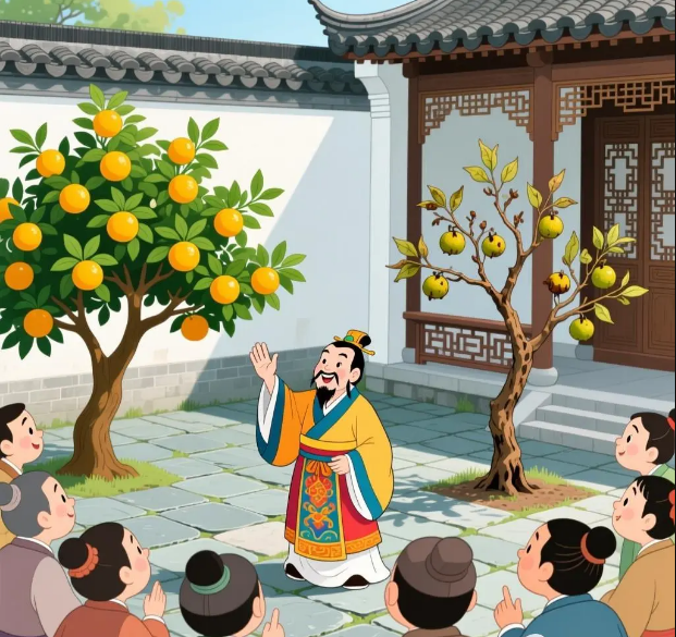 楚灵王觉得晏子的言辞确实厉害,不敢和他再辩论下去,便恭恭敬敬地请晏子入席喝酒。大家正喝得热闹的时候,忽然见两个士兵押着一个囚犯从殿下走过。楚灵王问:“这个囚犯是哪里人?犯了什么罪?”士兵回答说:“是齐国人,犯了盗窃罪。”楚灵王眼睛盯着晏子,笑嘻嘻地说:“齐国人都善于偷盗吗?”作陪的楚国大臣们听了,哄堂大笑。晏子离开座位,从容不迫地回答道:“我听说,桔树生长在淮河以南,结出来的桔子又大又甜;要是把桔树种在淮河以北的地方,就只能结出又小又酸的枳[zhǐ]。为什么桔子会变成枳呐?就因为淮南淮北的水土不一样呀!同样道理,这个人在齐国并不偷盗,一到楚国就偷盗,这大概是因为楚国的水土容易使百姓偷盗吧?”楚灵王又讨了场没趣,只得说:“我本想跟先生开开玩笑,没想到反被先生取笑了。”于是,楚灵王对晏子更加尊敬了。晏子临走的时候,楚灵王送给他许多礼物,并且亲自为晏子送行。晏子出色地完成了出使楚国的使命。齐景公见晏子为国争了光,十分高兴,提拔他做了相国。当时齐国有三个大力士,一个叫公孙捷,一个叫田开疆,一个叫古冶子,号称“齐国三杰”。他们因为勇猛异常,被齐景公宠爱,晏子遇到这三个人总是恭恭敬敬地快步走过去,可是这三个人连站都不站起来,根本不把晏子放在眼里。他们仗着景公的宠爱,为所欲为。当时,齐国的田氏,势力越来越大,他联合了国内几家大贵族,打败了掌握实权的栾氏和高氏,威望越来越高,直接威胁着国君的统治。田开疆正属于田氏一族,晏子很担心“三杰”为田氏效力,危害国家,想把他们除掉,又怕国君不听,反倒坏了事。于是心里暗暗拿定了主意:用计谋将他们除掉。