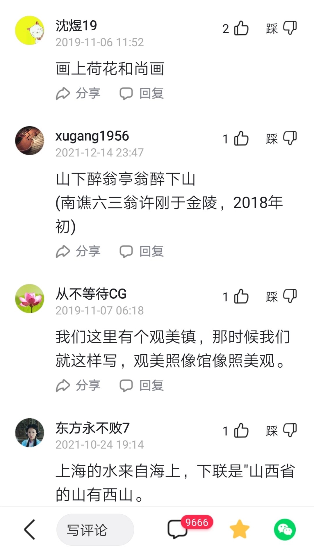 我在网上看了一篇关于“上海自来水来自海上”的文章,光写评论的网友就有一万来个。这说明有许许多多的人对这副对联感兴趣,并喜欢试对一下。